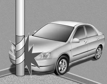 • Air bags may not inflate if the vehicle collides with objects such as utility poles or trees, where the point of impact is concentrated to one area and the full force of the impact is not delivered to the sensors.