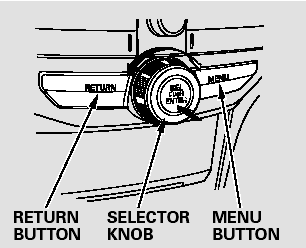 To select any setting such as the clock, sound adjusting, or the compass (if equipped), press the MENU button. To use any audio system function, the ignition switch must be in the ACCESSORY (I) or ON (II) position. You can select the item by turning the selector knob.