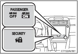 *1: These lights turn on when the engine switch is turned to the “ON” position (vehicles without a smart key system) or the “ENGINE START STOP” switch is turned to IGNITION ON mode (vehicles with a smart key system) to indicate that a system check is being performed. They will turn off after the engine is started, or after a few seconds. There may be a malfunction in a system if a light does not come on, or if the lights do not turn off. Have the vehicle inspected by your Toyota dealer.