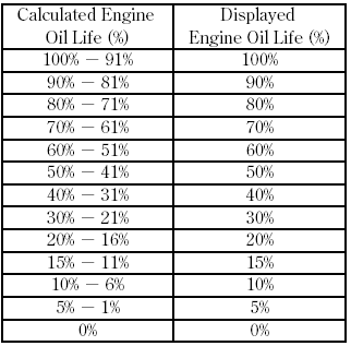 Based on the engine operating conditions, the onboard computer in your vehicle calculates the remaining engine oil life and displays it as a percentage.