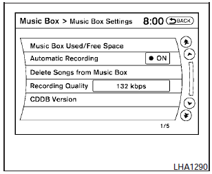 When this item is turned to ON, the Music Box Hard Drive audio system automatically starts recording when a CD is inserted.