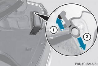 The fuel filler flap is unlocked or locked automatically when you open or close the vehicle with the SmartKey or using KEYLESSGO.