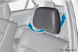 Vehicles without the through-loading feature: the head restraints cannot be removed from the rear compartment seats.