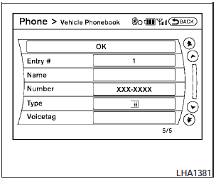 The system will show your cell phones phonebook that was downloaded (depending on your phones compatibility). You may select one of these entries to save in the vehicle phonebook.