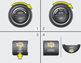 • If warm air to the floor is desired while defrosting or defogging, set the mode to the floor-defrost position.